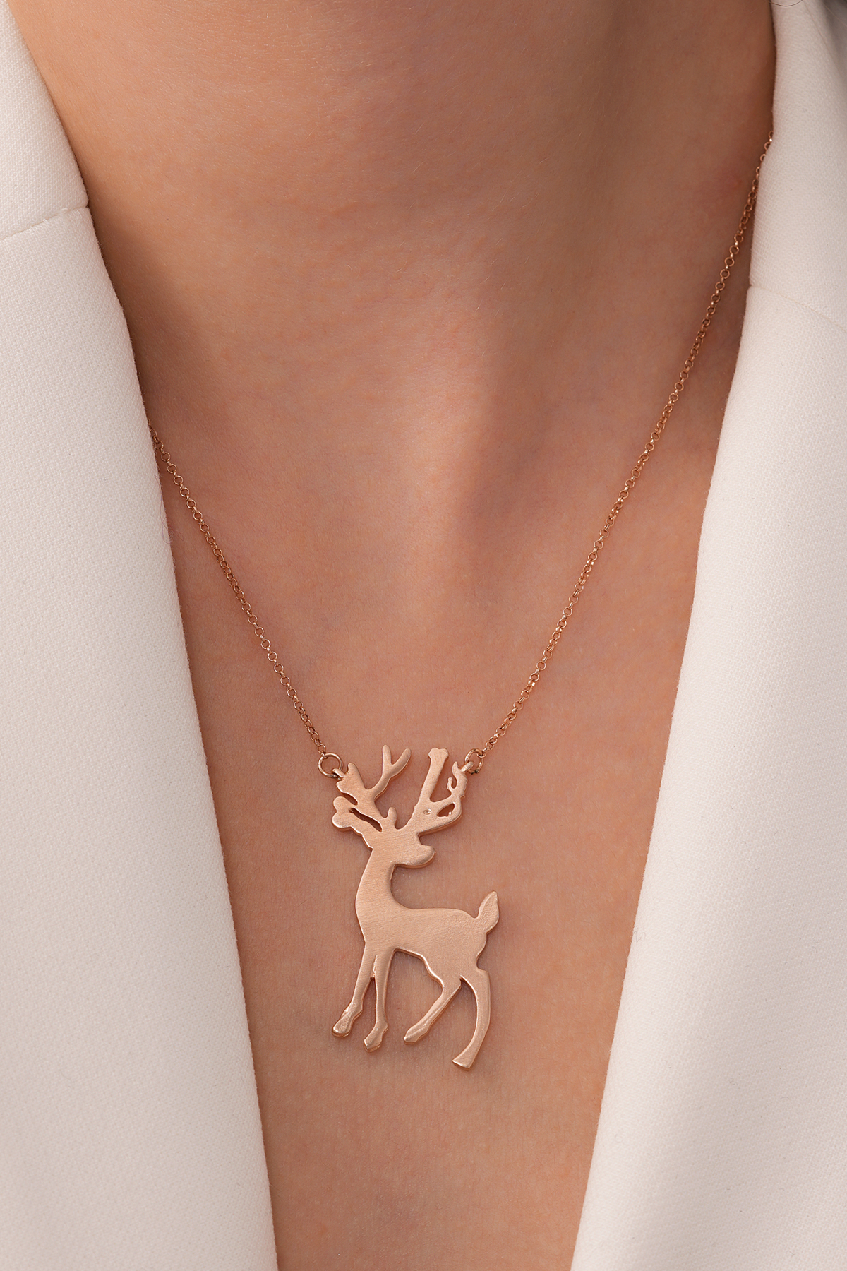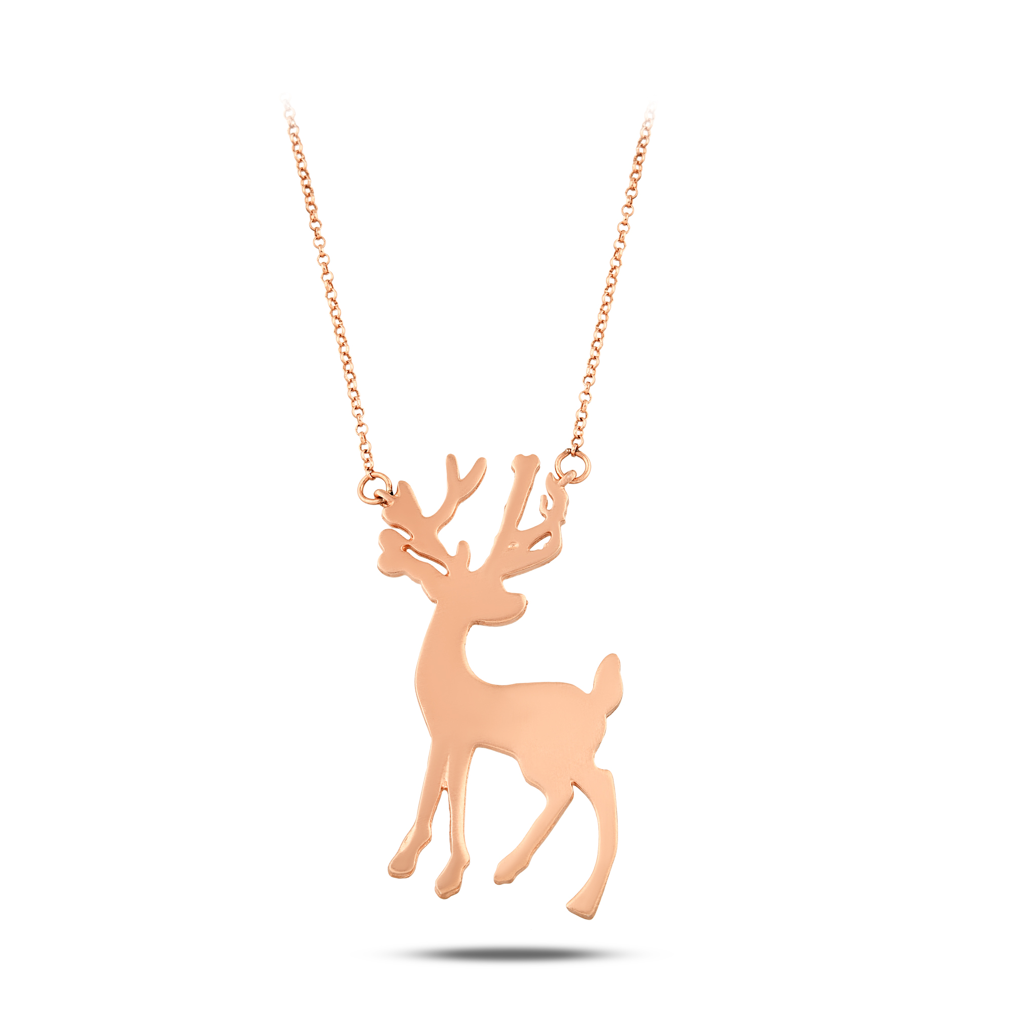 925 Ayar Gümüş Rose Kaplama Geyik Kolye – El Yapımı